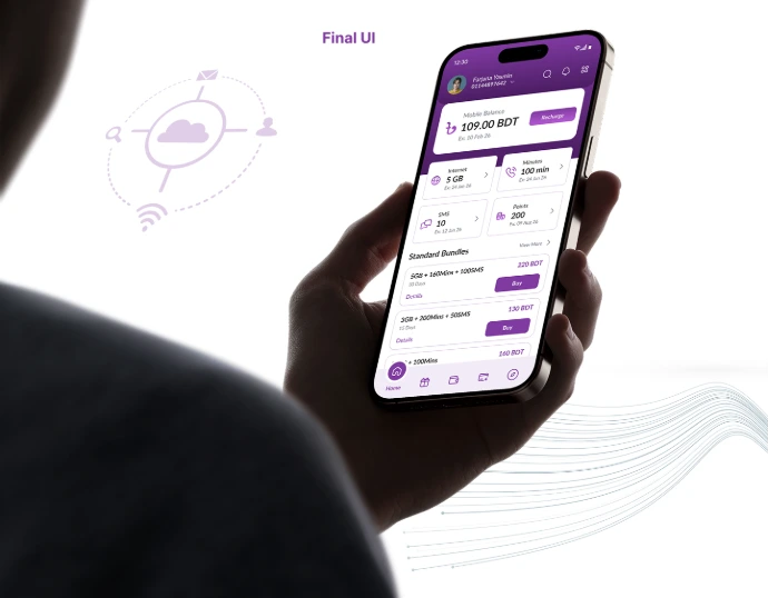 Existing telecommunication apps often overwhelm users with cluttered interfaces and poor information hierarchy, making essential tasks hard to find. MyCitycell addresses this by prioritizing core actions like balance checks, smart packs, auto-recharge, and quick bundle purchases.